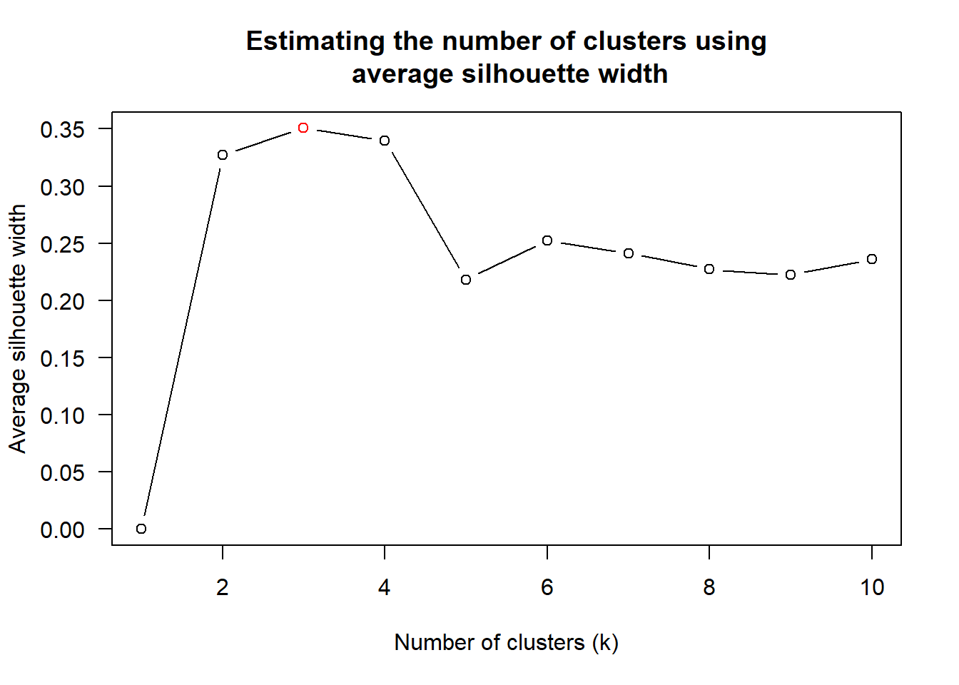 plot(num_k)Figure above shows that k=3 (i.e. highlighted in red) is suitable.
