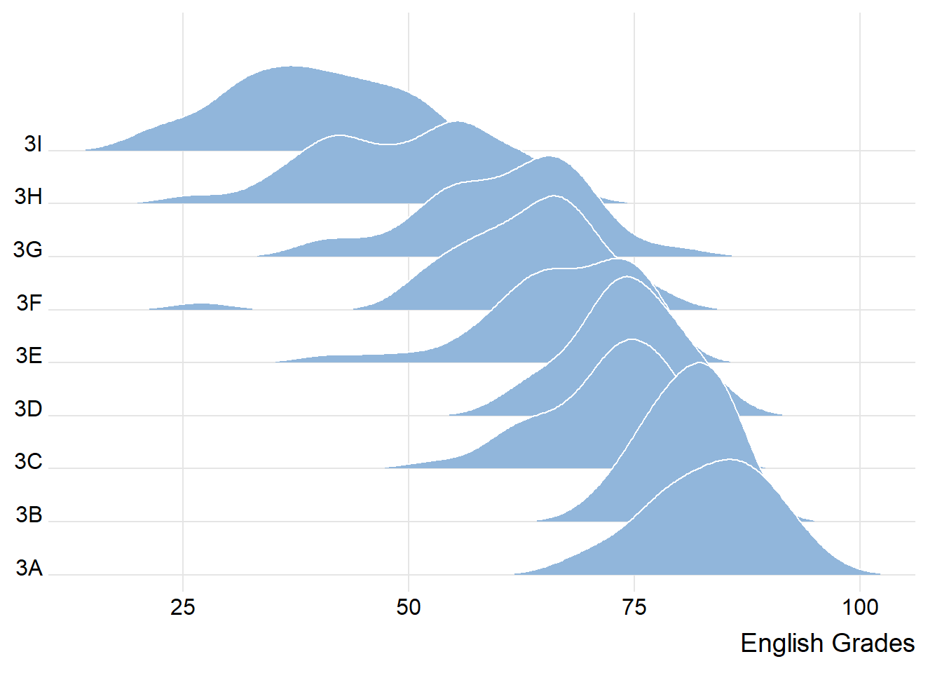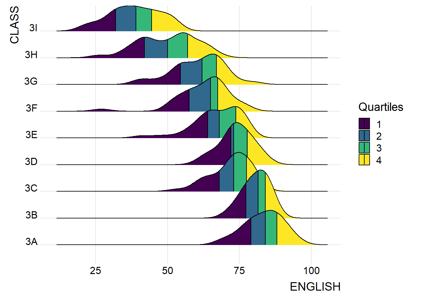 ggtitle("Density Plot with Summary Statistics of English Scores")Ridgeline Plot